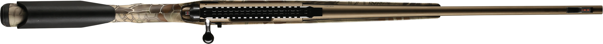 | 24" / 61 cm | .30-06 Springfield | 4+1 Rounds Steel | 1:10" | 114 Cm | 19.1 mm | 3,7 | Cerakote® Burnt Bronze | Kryptek® Highlander |