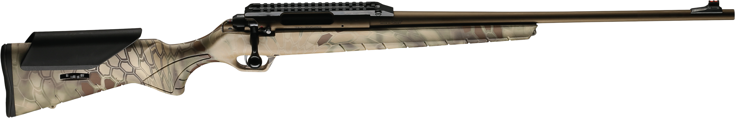 | 20" / 51 cm | 6.5 Creedmoor | 4+1 Rounds Steel | 1/8" | 103 Cm | 17.1 mm | 3,4 | Cerakote® Burnt Bronze | Kryptek® Highlander |